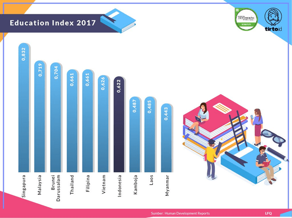 Indeks pendidikan di indonesia masih kalah dari negara ASEAN lain, hanya unggul dari negara Kamboja, Laos, dan Myanmar.